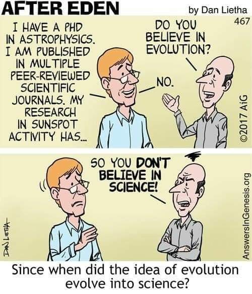 Lain lagi hal nya di Indonesia pertentangan 2 ilmuwan ini hampir tidak pernah terdengar atau ada pihak ketiga yang sengaja menutupi bahwa negara-negara di Eropa dan sebagian Asia ada 2 macam ilmuwan yang saling bertentangan; evolutionist dan creationist. Dengan tidak adanya pilihan, bangsa kita sepertinya “dipaksa” untuk menerima bahwa agama dan Ilmu pengetahuan selalu bertentangan dan untuk menjadi ilmiah harus meyakini teori evolusi, walaupun dengan bukti atau teori yang terlalu dipaksakan, sementara bukti-bukti dari kitab/agama harus di singkirkan walaupun bukti pendukungnya cukup banyak.