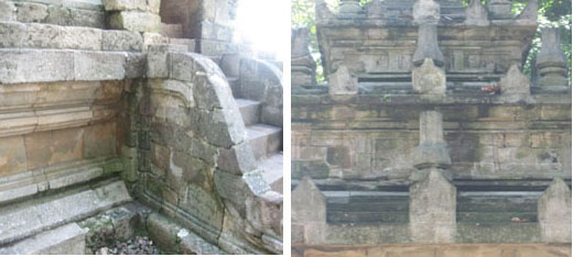 Batu andesit yang digunakan pada kaki dan badan Candi sama dengan yang digunakan pada makam-makam kuno yang tersebar di situs ini.