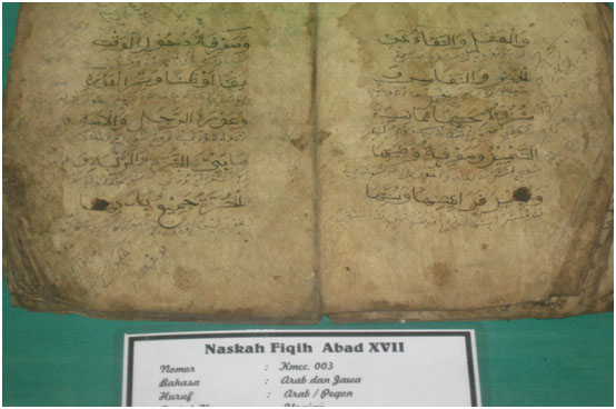 Foto di atas adalah contoh kitab yang ditulis dengan bahasa dan huruf dan bahasa Arab yang diberi keterangan dengan bahasa Jawi atau Arab Pegon, yaitu bahasa Jawa (Sunda atau Jawa tengah) ataupun bahasa Melayu dengan tulisan Arab. Adanya temuan Arab Pegon atau Jawi Script ini mempunyai arti penting bahwa selama hidupnya Mbah Dalem Arief Muhammad memimpin satu wilayah yang berpenduduk mayoritas muslim yang telah menetap di wilayah ini selama beberapa generasi sebelumnya. Penggunaan Arab pegon atau tulisan Arab berbahasa Sunda atau Jawa dan bukannya menggunakan huruf dan bahasa Sunda kuno menandakan telah terjadinya asimilasi budaya yang terjalin selama ratusan tahun sebelumnya antara penduduk yang menggunakan bahasa dan tulisan Arab dengan penduduk Nusantara.