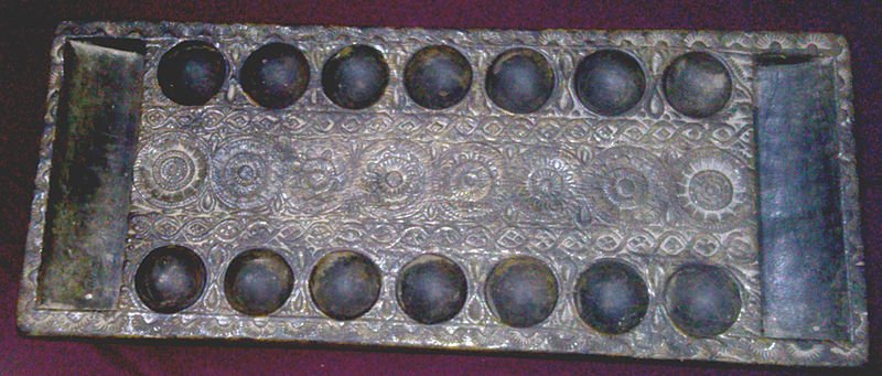 Permainan congklak di India disebut chenemane atau ali guli mane. Sumber gbr. https://en.m.wikipedia.org/wiki/Ali_Guli_Mane#/media/File%3AChennemane.jpg from the work of: prof .Visvanatha Badikana